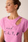 Art. 296 Composition: 95% cotton, 5% elastane. Stretch cotton crop top with short sleeves and an asymmetrical neckline, with a decorative cut on one shoulder.