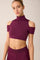 Art. 294 Composition: 60%PL; 20%EA; 10%PA; 10%CO. Short, fitted top with a high neck and a porthole on the back, bare shoulders with an elastic tulle band on the arms for a dynamic and modern effect.