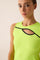 Art. 305 Composition: 80% Polyester; 20% Elastane. Sleeveless, sporty top with diagonal microfiber details and a coated fabric finish.